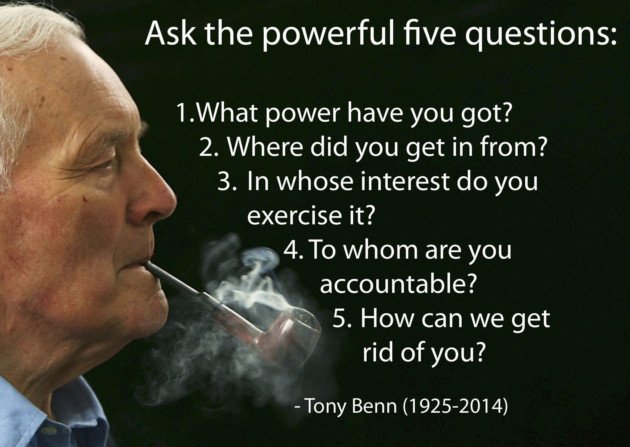 Thus the more powerful argument of proponents of the political constitution is that the law in the courts represents politics by other means and reduces the potential for the electorate, through the Government, to implement its will. As with the famous Tony Benn quote, the most important thing for political constitutionalists is strengthening the processes by which the electorate can both implement and interrogate power, hence the five questions Benn proposes.